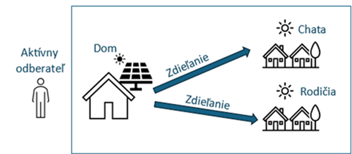 Aktívny odberateľ môže zdieľať elektrinu do iných odberných miest, ako je napríklad chata, dom príbuzných, škôlka, ..